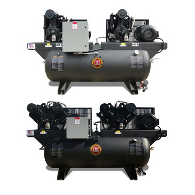 Compressed Air Systems duplex compressors are the ultimate in electrical efficiency. Designed for redundancy in all situations and built to deliver twice the power in the same amount of space as a typical compressors. Our duplex compressors deliver additional air when needed, are easy to service, maintain and operate. All units feature heavy-duty cast iron low-RPM pumps manufactured for durability and long life and heavy-duty components.