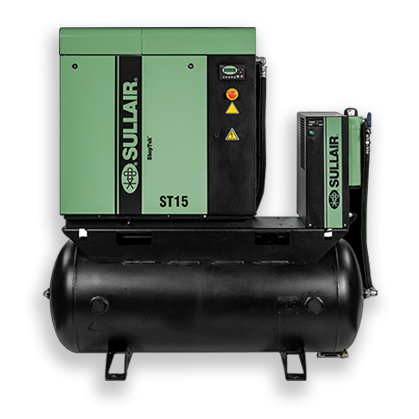 - ST410 — 5 hp (4 kW), 16 acfm* (0.47 m³/min), 150 psi (10 bar)